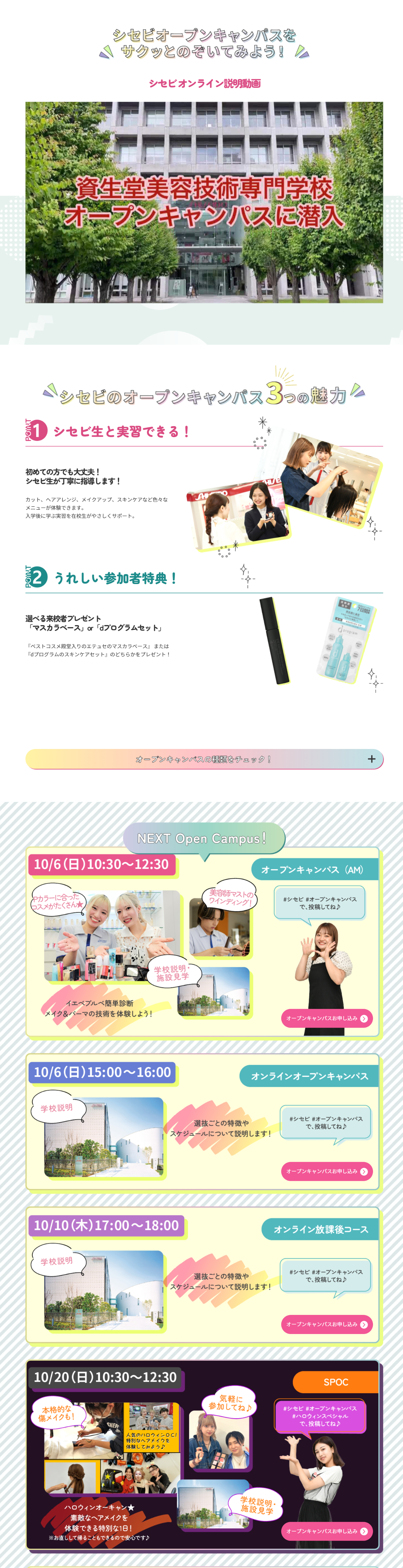 資生堂美容技術専門学校様 オープンキャンパスページ