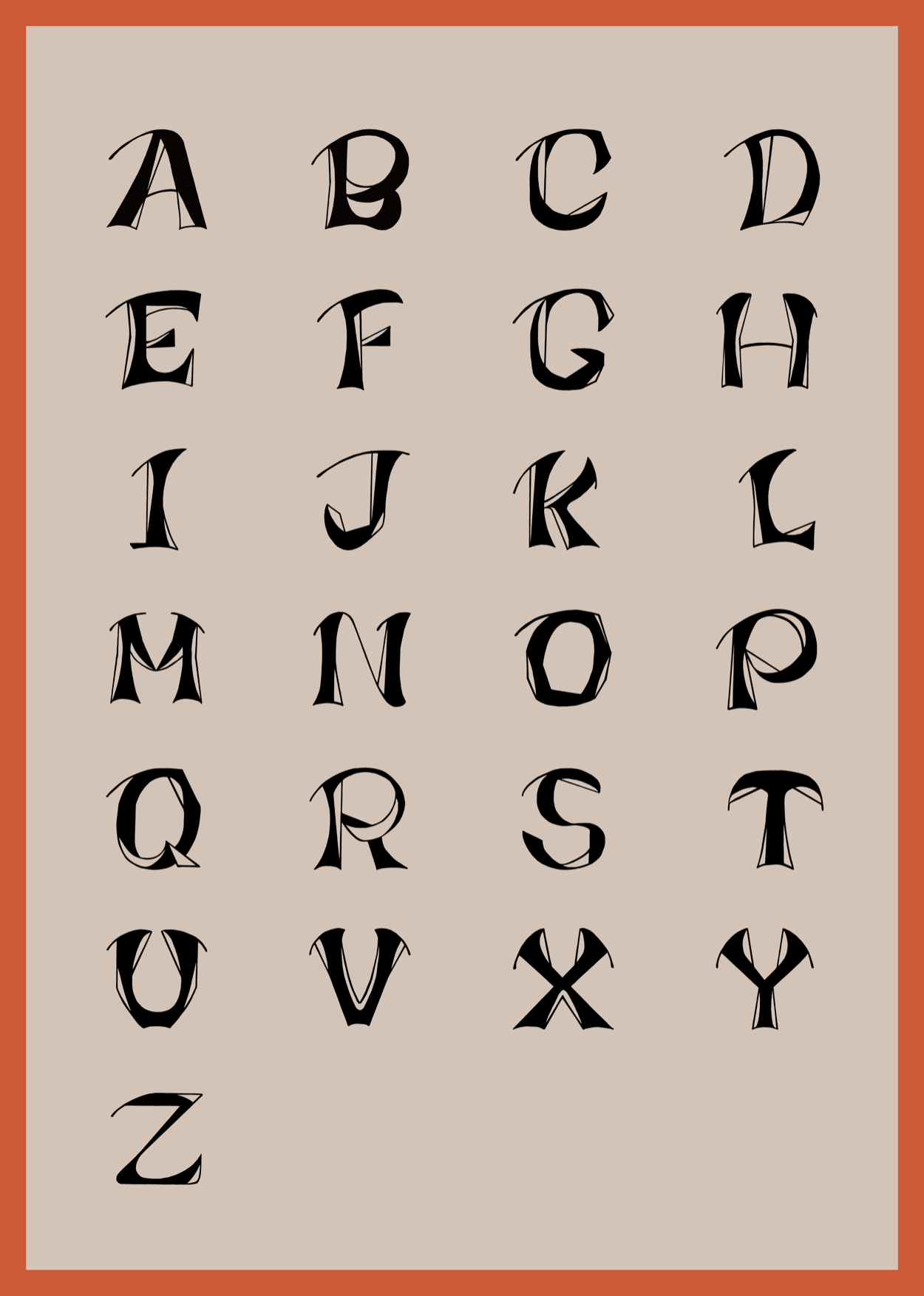 直線と曲線 中山 ほのか 奈良芸術短期大学 美術科 2回生 グラフィックデザインクラス OVERVIEW 授業課題 タイポグラフィー YEAR 2019 手書きで文字のデザインをした後、Adobe Illusutraterで形を整えてデータ化し、ソフトを使って実際に打てるようにしました。直線と曲線のメリハリをつけ、立体感のある文字を目指しました。