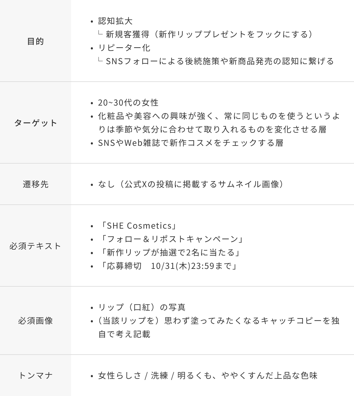 - 要件( 目的・ターゲット・遷移先・制作条件)