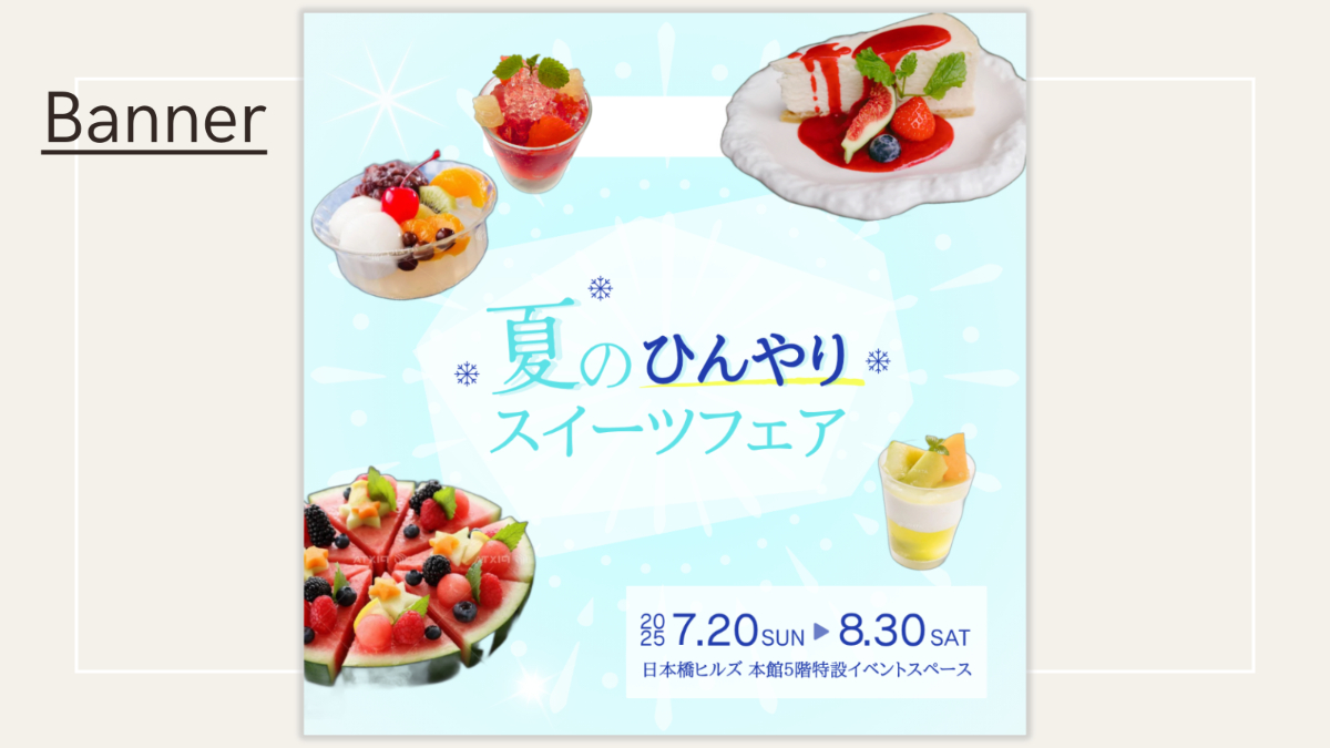 ・全体背景はグラデーションカラーにし、暑さが吹き飛ぶイメージを表現しました。