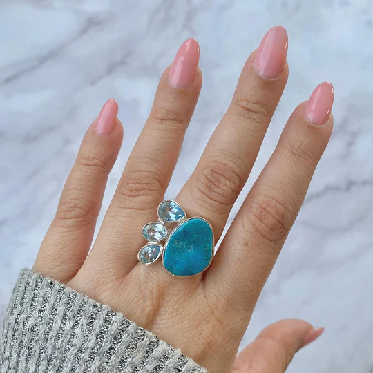 Get yourself Sagacia's raw, natural beauty - the Rough Turquoise jewelry made by Sagacia. These jewelry pieces that are made out of natural and 100% authentic rough turquoise feature the unrefined, rugged charm of rough turquoise. All of Sagacia's Rough Turquoise jewelry is crafted out of pure 925 sterling silver (which, by the way, is hypoallergenic in nature) and is also plated with rhodium vermeil. This gemstone is well known within the spiritual community for its grounding properties, and not only does the rough turquoise jewelry boost communication abilities, but it also facilitates authentic relationships. Sagacia's Rough Turquoise jewelry is ideal for those who deeply appreciate organic elegance, and this jewelry will add a tinge of untamed beauty to your look. So, purchase Sagacia's Rough Turquoise jewelry now and break trends with this primal beauty.