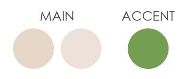 高明度のベージュはメインカラーに、低明度の緑色はアクセントカラーとして目立たせたいボタンに使用しました。