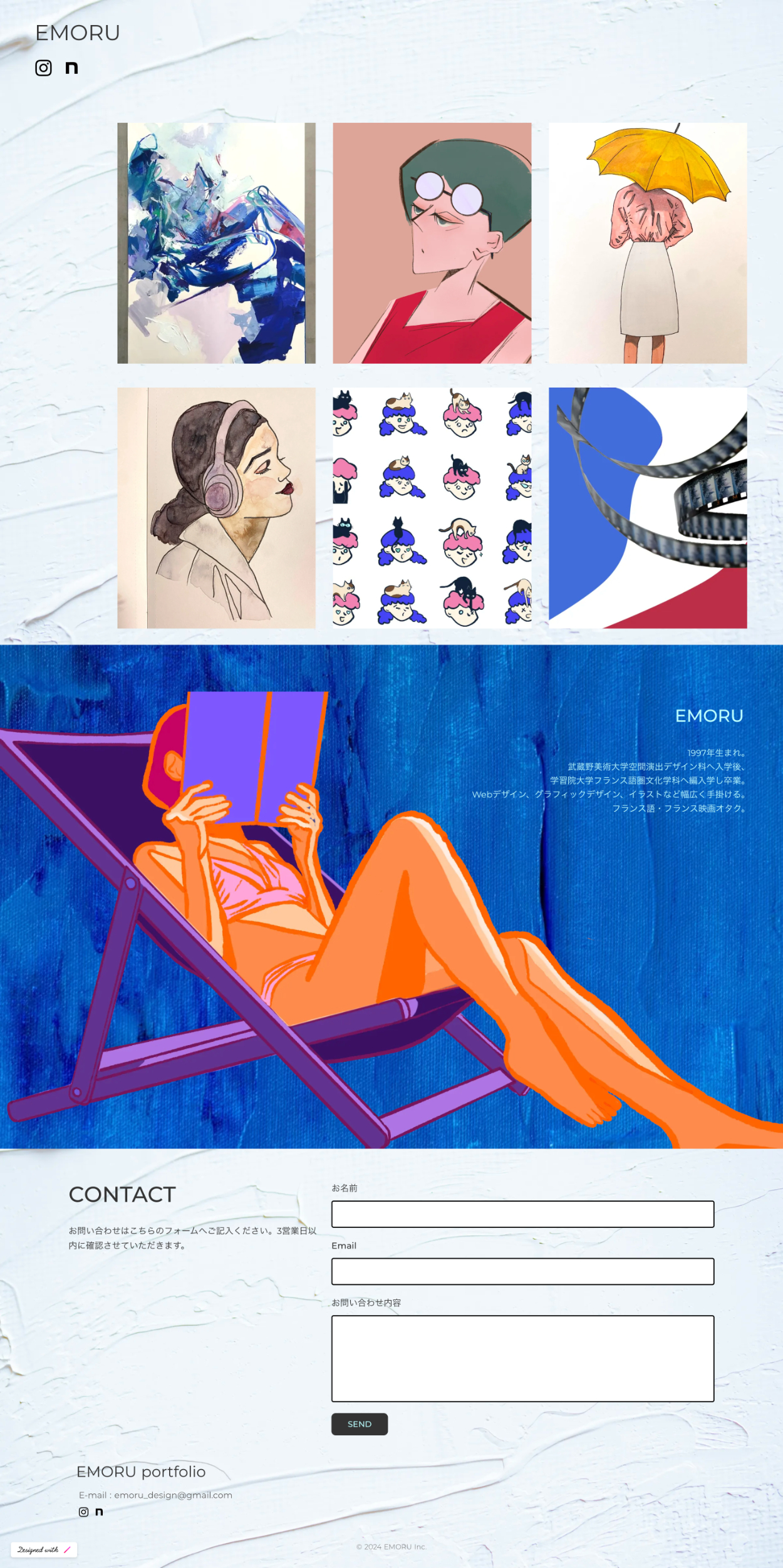 自身のイラストをメインに掲載するためのポートフォリオサイトを作成しました。🔹制作期間:一週間 🔹使用ツール:STUDIO、Photoshop(ワイヤーフレーム)