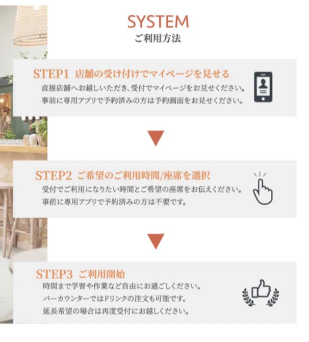 ご利用方法のステップは、アクセントカラーとイラストで直感的に認識しやすくしました。