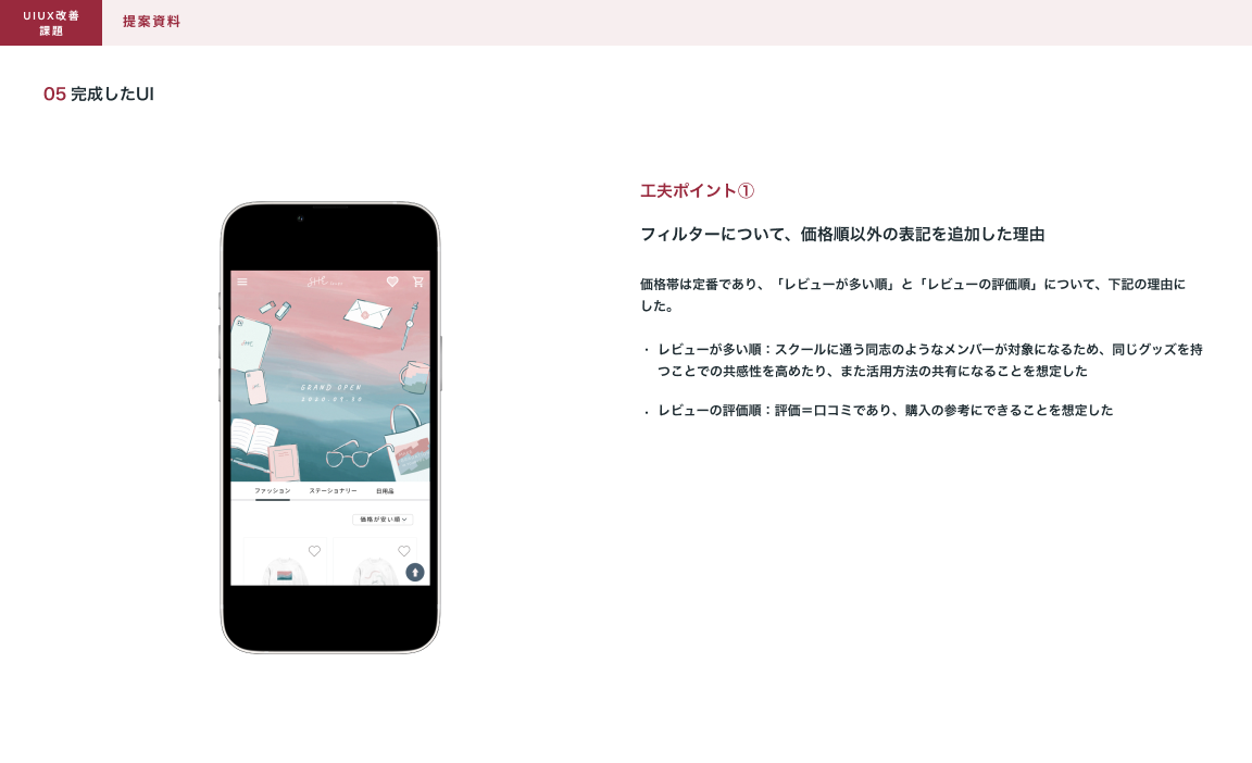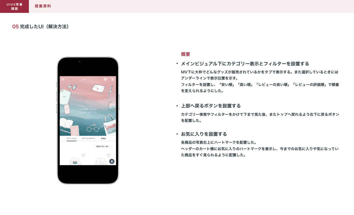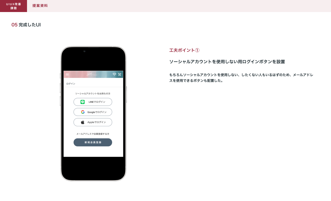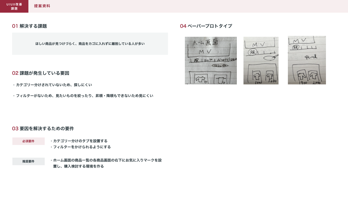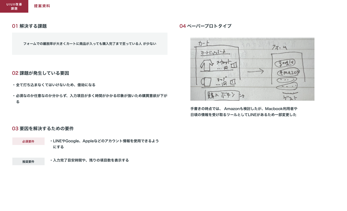 【課題】UIUX改善:ECサイトのUIUX改善の提案資料作成