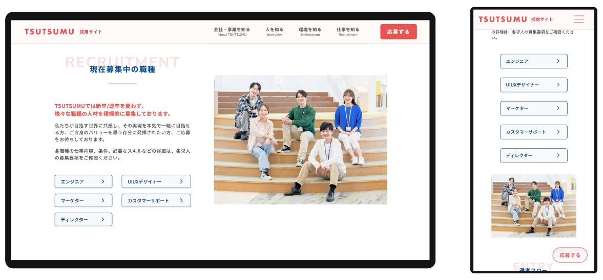 完成したサイトはこちら:https://test-z.chowder.jp/she-tsutsumu/recruit/