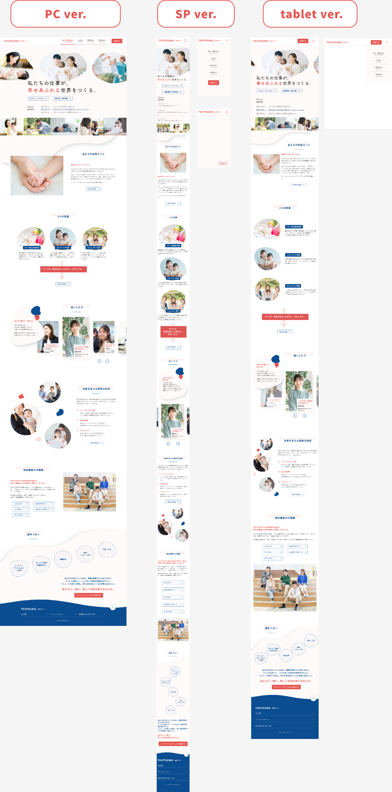 ピンク × 赤 × 青の組み合わせで、赤ちゃん × お母さん × お父さんを連想させ、クライアントの事業内容を視覚的に表現することを意図しました。