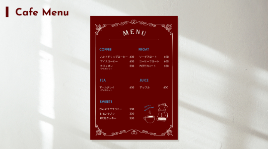 架空のカフェのおすすめメニューのバナーを作成しました。