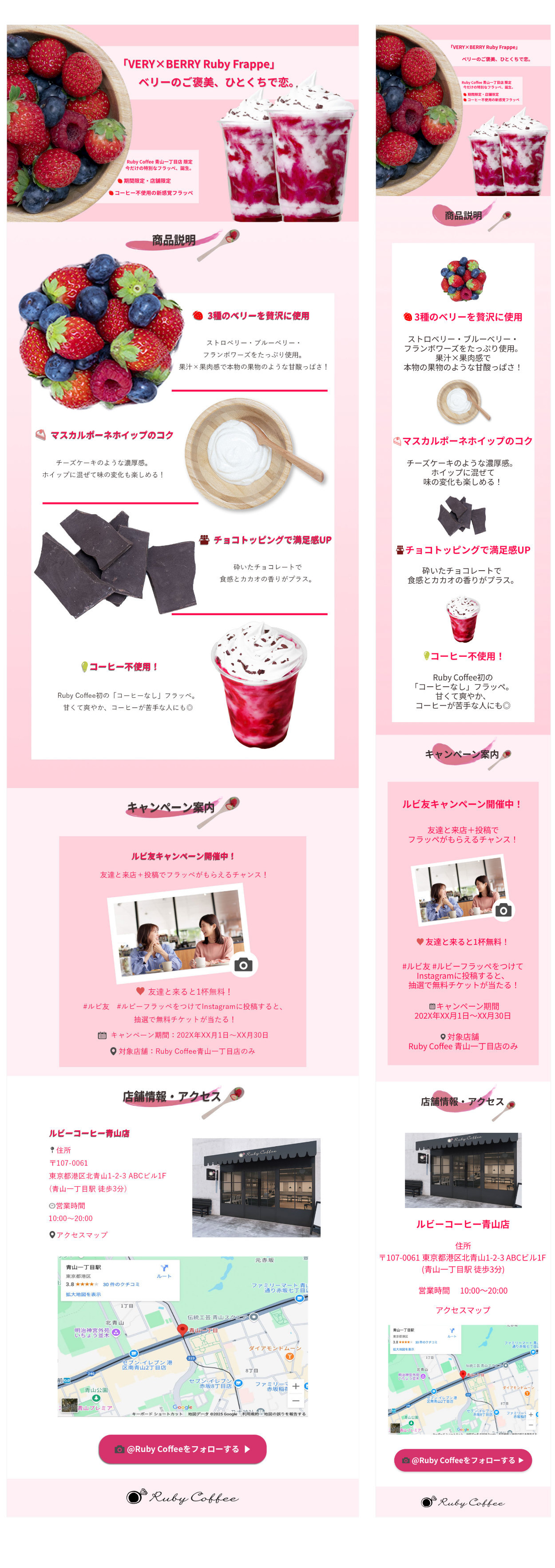 Ruby Coffee青山一丁目店限定・期間限定商品「ベリー×ベリー ルビーフラッペ」キャンペーンLPのデザインを担当しました。