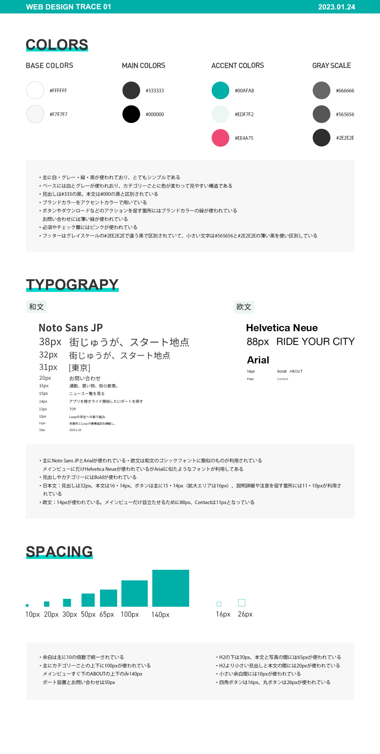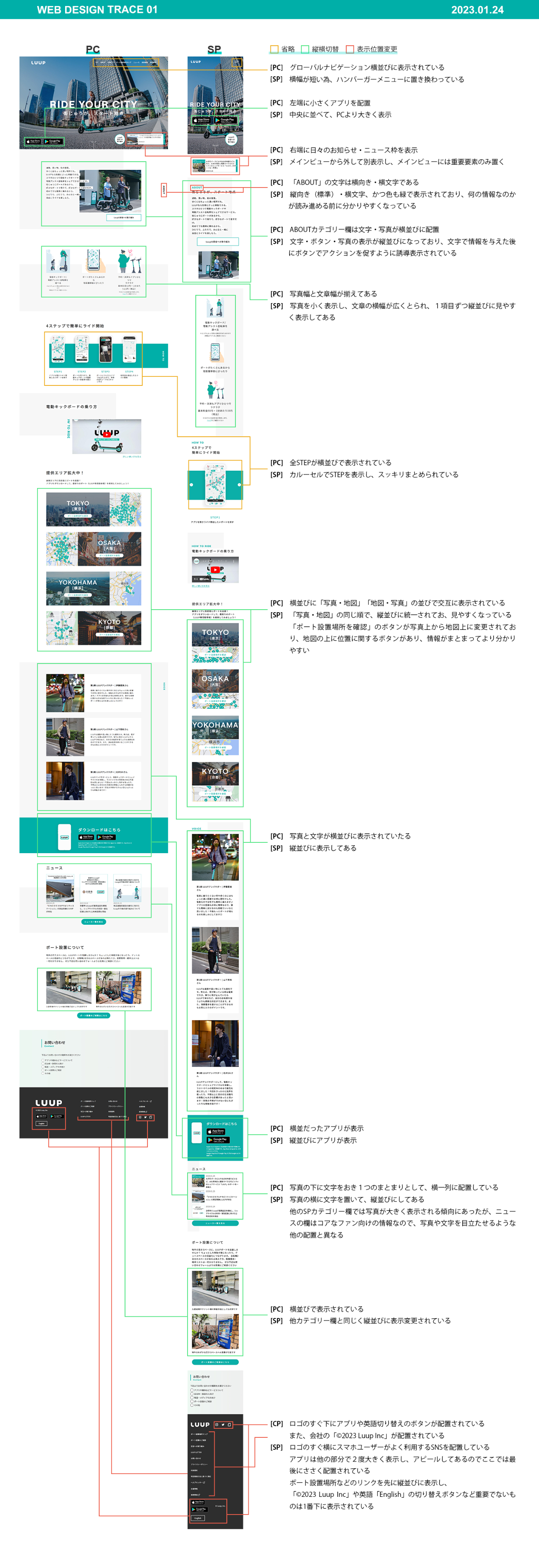Luuupサイト:①トレース ②スタイルガイド制作 ③PCとSPのデザインの比較分析 |Webサイトの大まかなレイアウトを学ぶ (制作時期:2023年1月|1週間)
