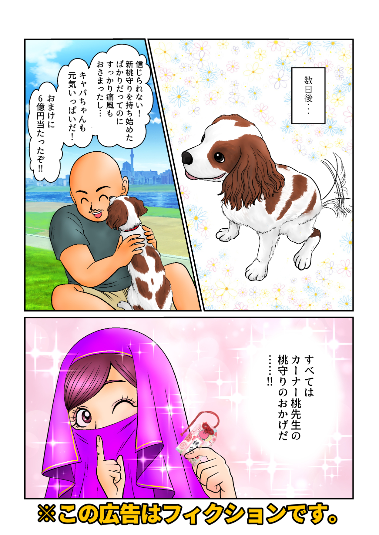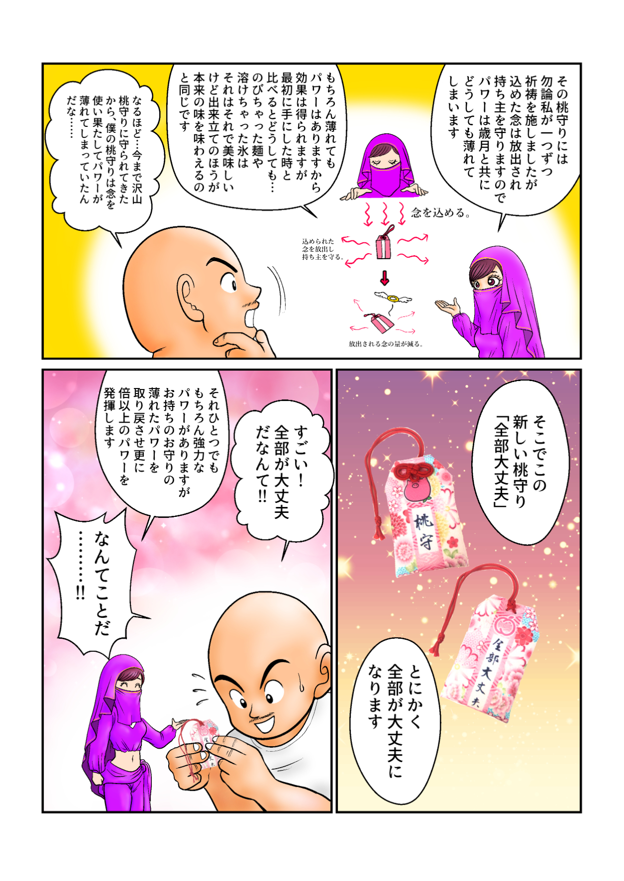 桃乃木かなグッズお守りの宣伝用漫画です。