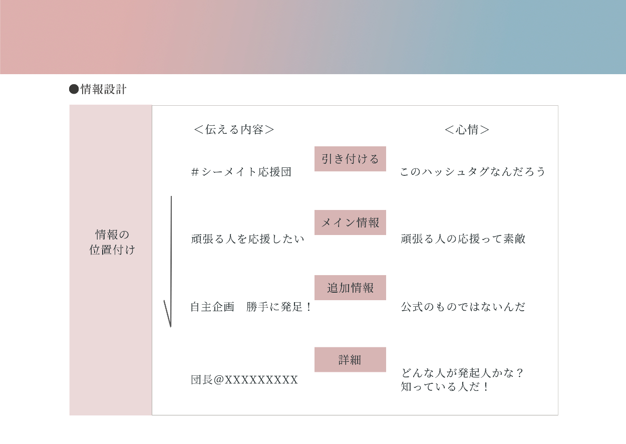 ”旗”イメージを全面に大きく配置するために、それ以外の情報は多く盛り込まないようにした。なので、同じデザインで追加情報の違う2パターンを作成することにした。