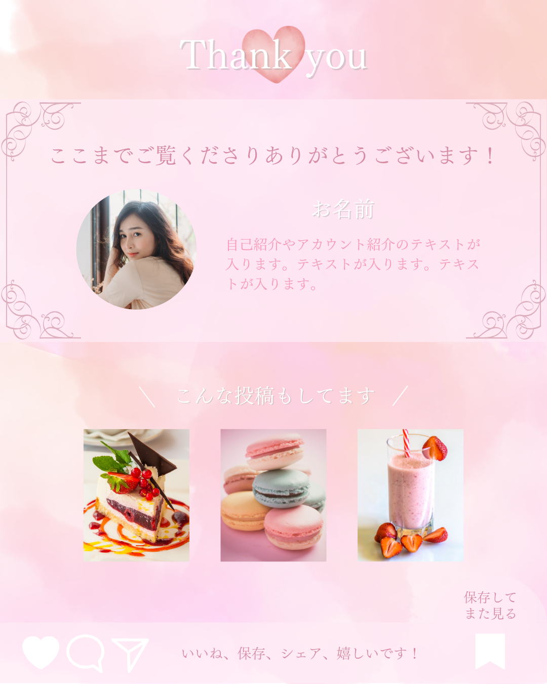 個人でSNSを発信している方の依頼でSNS投稿用画像のテンプレートを制作しました。 ※画像は一部内容を差し替えています。