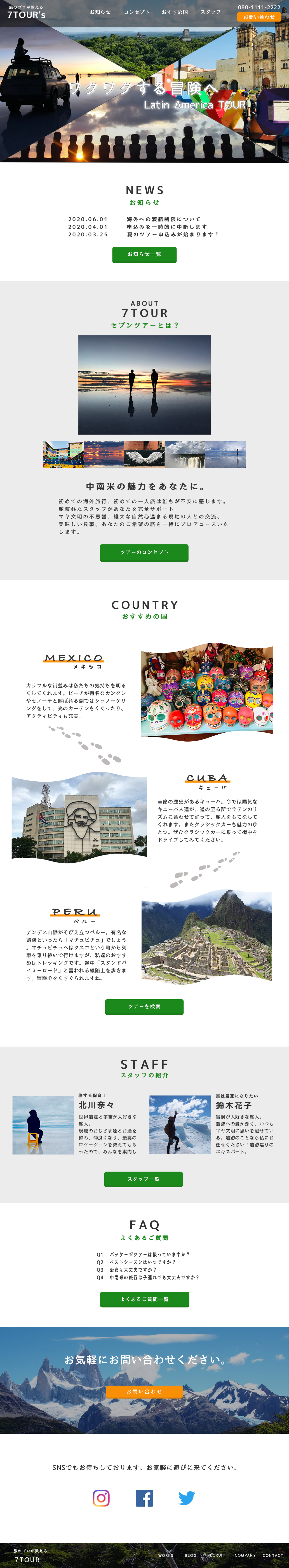 【自主制作・デザインカンプ】架空旅行サイト NANA KITAGAWA 旅する保育士 webデザイナー 20代後半から30代をターゲットとした架空の旅行サイトです。いつもの”旅行”とは少し違った”旅”のご提供をコンセプトにしています。