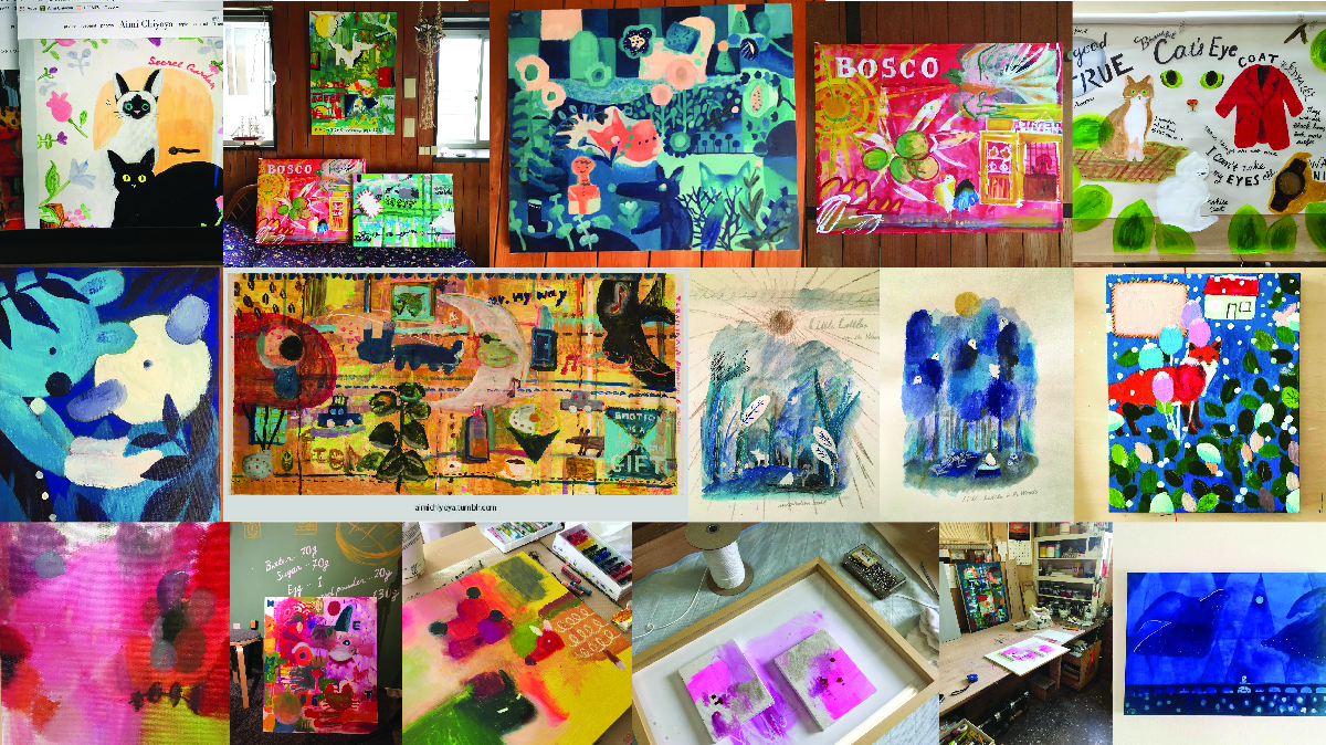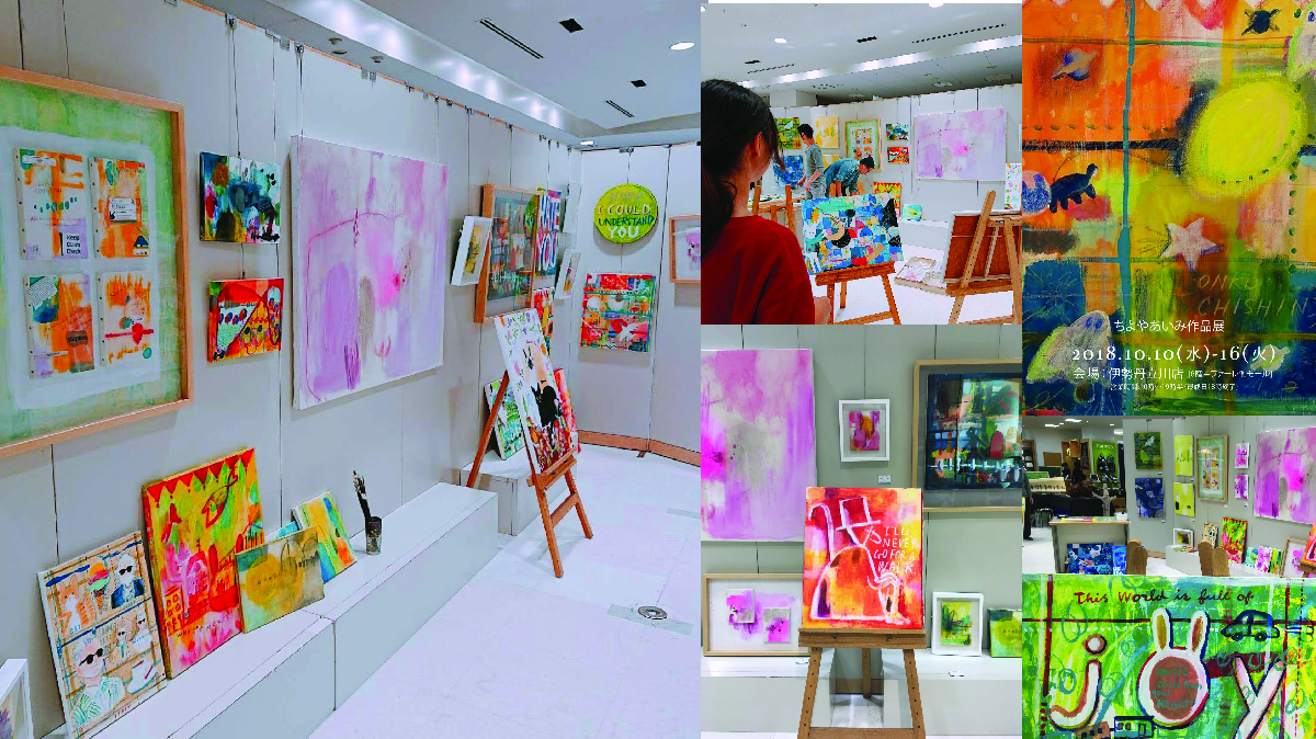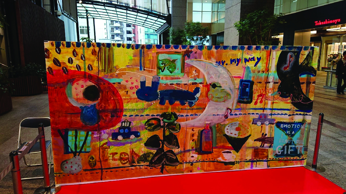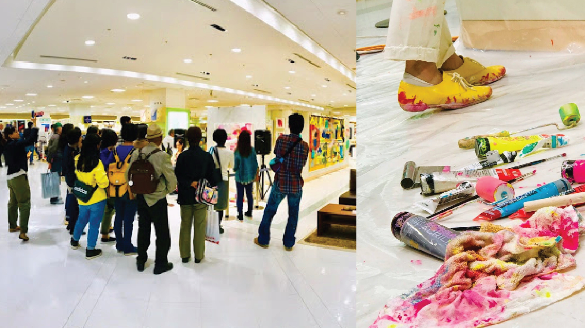 アトリエで制作するだけではなく、ライブでペイントをすることによって音楽とのコラボレーションや、絵画を身近に感じてもらう機会をつくってきました。また、一般の人が絵画を描いてみれるようにカフェでのワークショップを開催しました。