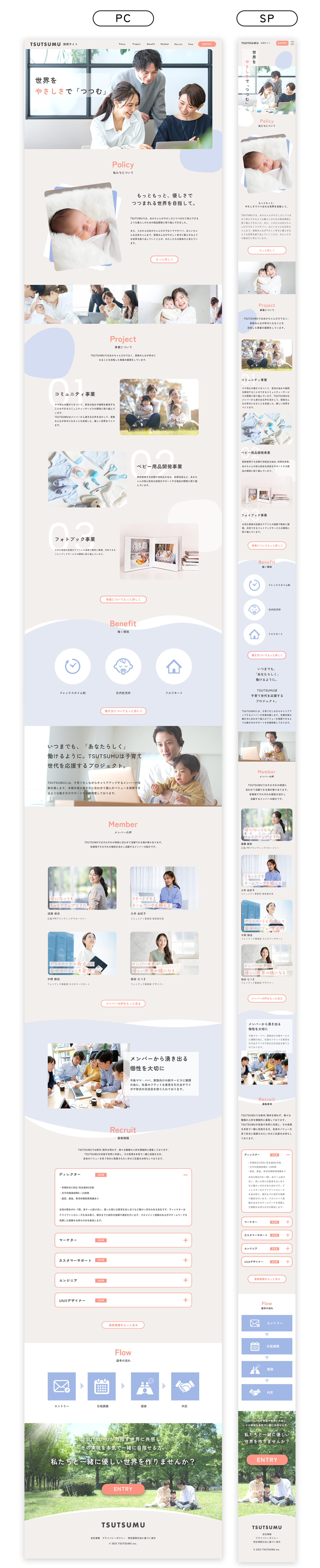 - ベビー用品をメインとした企業『TSUTSUMU株式会社』の採用サイト制作
