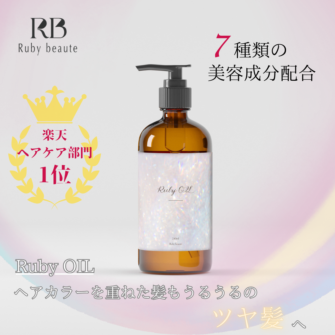 入れてほしい内容「商品名(Rudy OIL)・ヘアカラーを重ねた髪もうるうるのツヤ髪へ・7種類の美容成分配合・楽天ヘアケア部門1位」