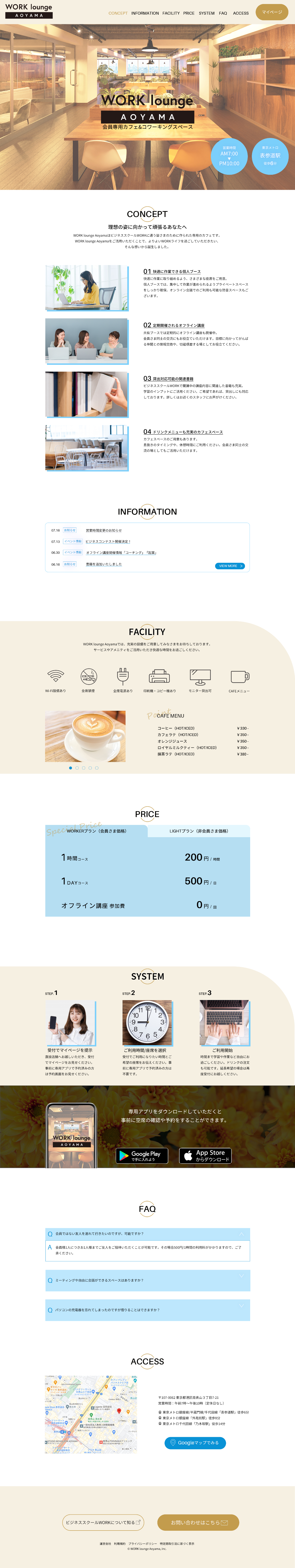 会員様限定のカフェ&コワーキングスペースをオープンするため、利用方法やアクセス情報を載せたWebサイトの制作。