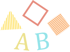 ・英会話らしいアルファベット、ポップさ感じるストライプの図形を、背景のあしらいに入れました。
