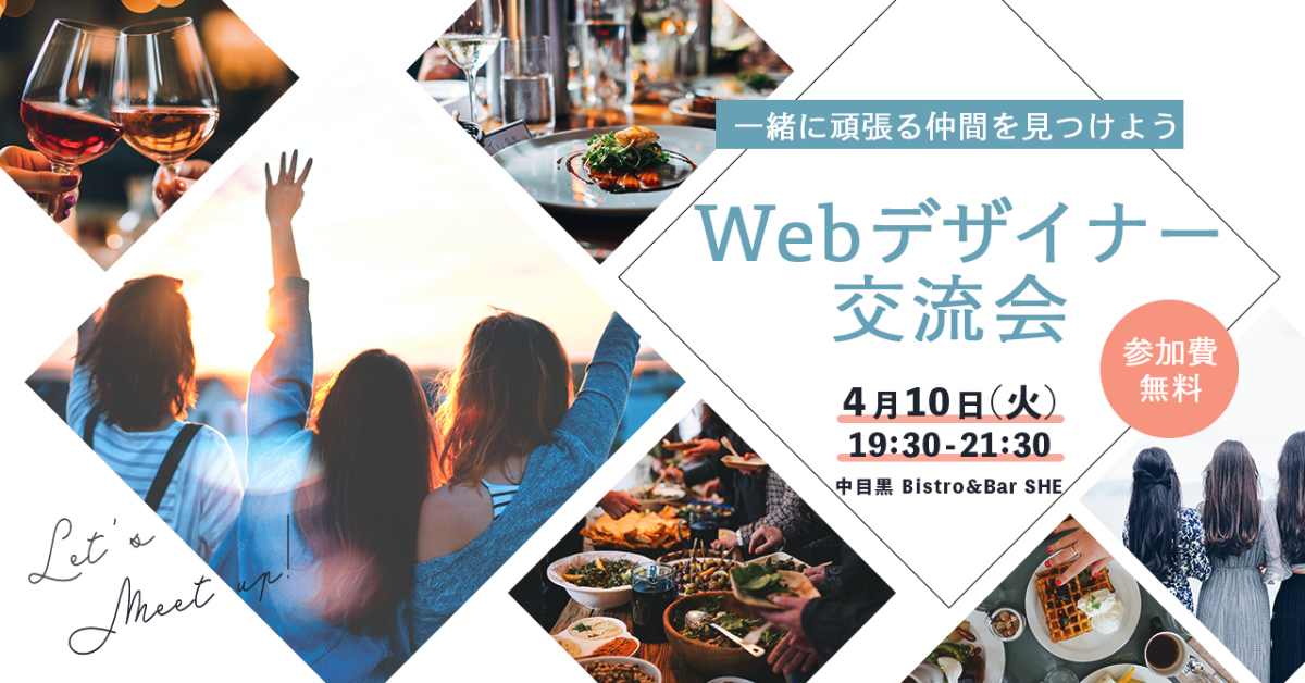 ・Webデザイナー交流会の次に日付→参加費無料→場所と、伝えたい情報から優先的に目につくような配置・サイズを意識しました。