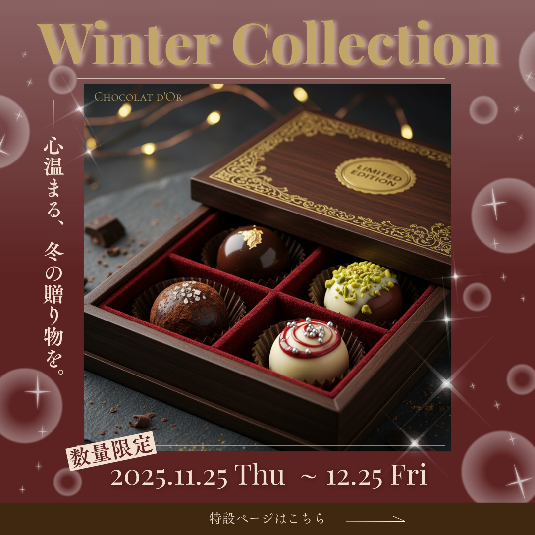 「黄金のチョコレート」という意味を持つブランド名で、顧客に「特別なご褒美」や「大切な人への贈り物」として選ばれることを目指し、品質と美しさを追求しています。