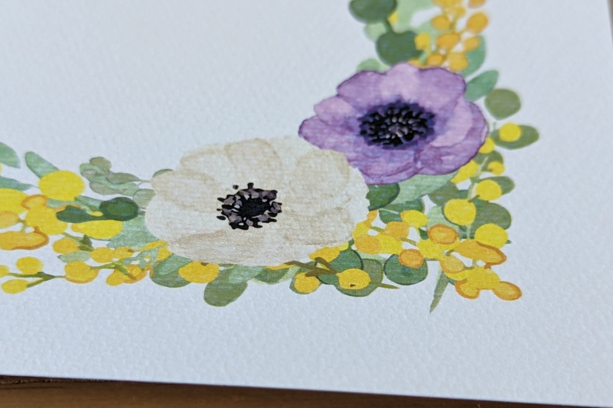 - 印刷はプリスタ。さんにお願いいたしました。よりナチュラルな雰囲気になるよう、紙は凹凸のあるものを選びました。