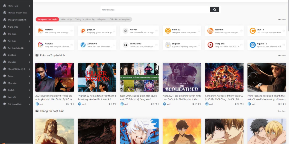 43 nhau như Phim - Clip、Thông Tin phim - Rạp chiếu phim、Diễn đàn review phim、Nghe nhạc、卡拉 OK 在线、Diễn đàn âm nhạc、Thể thao、Ẩm thực、Đọc báo、Gi ải trí, 演艺圈, Phụ nữ & Gia Đình, Game, Mua sắm, Du lịch, Xem bói, Nội dung khác, NHIẾP ẢNH, Tiện ích tra cứu, Việc làm - tìm kiếm việc làm, GÓC HỌC TẬP & SÁCH. ục đều cung cấp thông Tin và dịch vụ liên quan