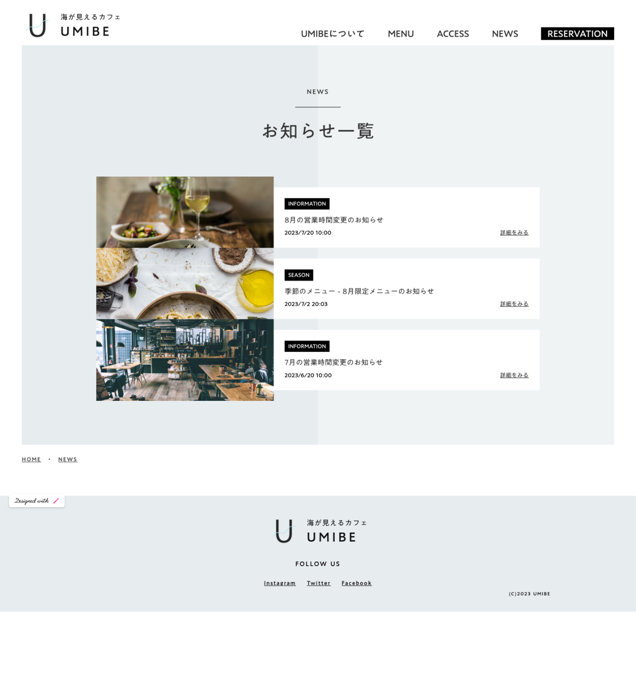 →UMIBEのUをモチーフに。海が見えることロケーションが売りの1つなので、波のモチーフを加えた。素朴だけど新しいイメージになるように線の細さを工夫。