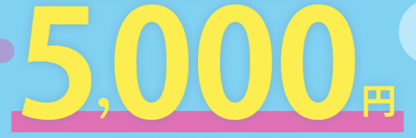 「キャンペーン利用による入会者増」がバナー制作の目的であるため、最も訴求したい価格が目に止まるよう「5000円」を250pt、他の文字を70pt以下と100px以上差のある調整することでコントラストを生み、ビビットなピンクのアクセントカラーで強調するデザインにしました。