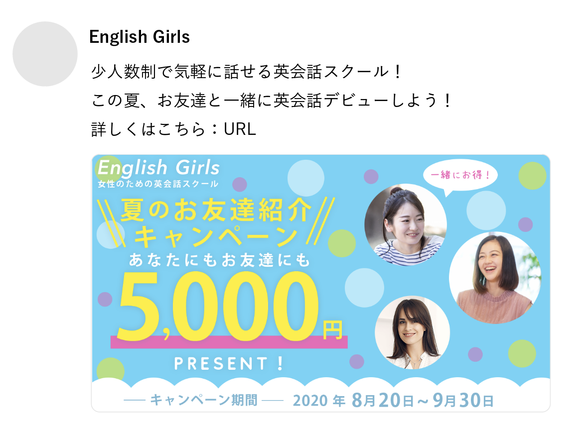 クライアント名:English Girls 20代の女性をメイン顧客とする初心者向けの英会話教室