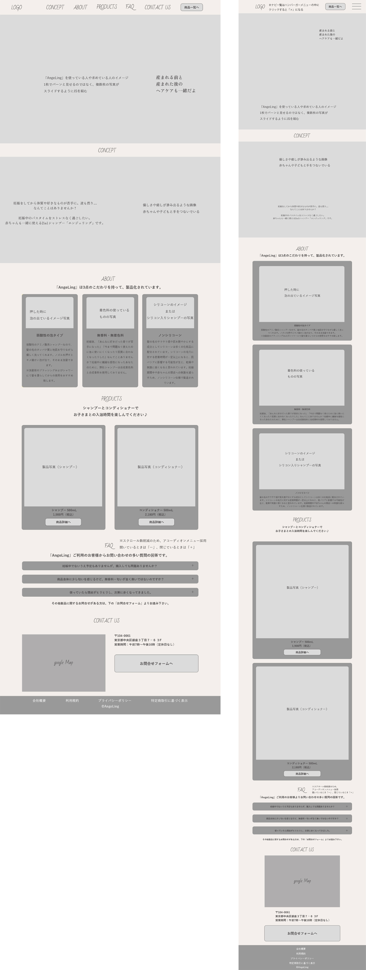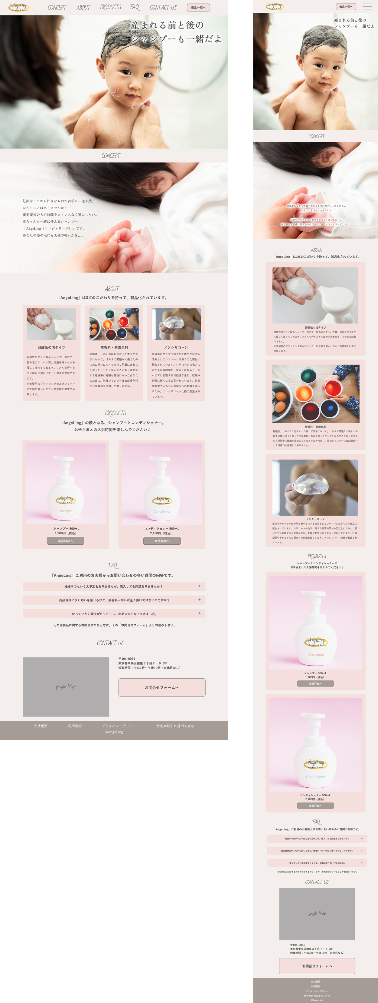 赤ちゃんと使えるシャンプー「AngeLing」の架空Webサイト制作