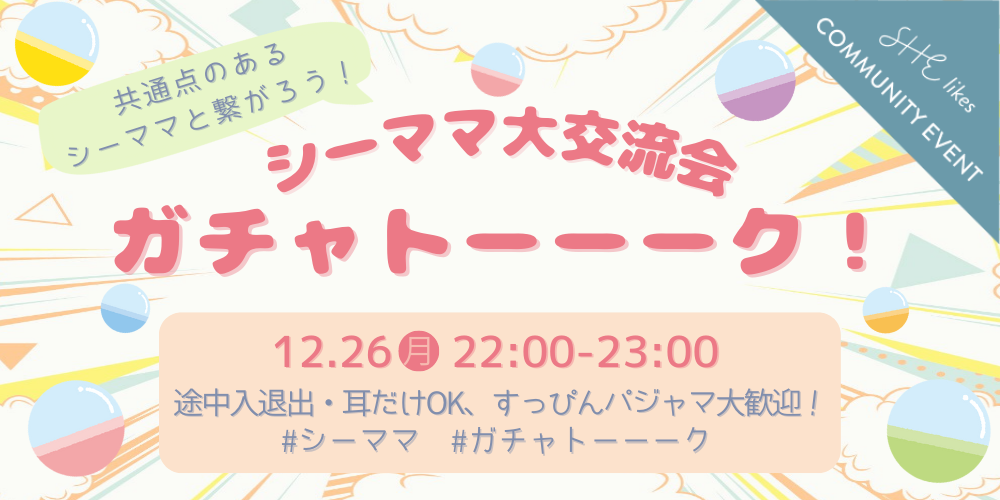 【制作実例】イベント用バナー satomi 複業webデザイナー OVERVIEW SHElikesのコミュニティイベントで使用するバナーを制作しました。 使用ツール:photoshop YEAR 2022 【制作】目的:コミュニティイベントの告知ターゲット:SHElikesの受講生(20-40代、特にママ)【制作】テーマが「ガチャトーーーク」なので、カプセルトイをイメージしました。カプセルトイが飛び出してくるデザインにして、交流会が盛り上がるような印象になるよう意識しました。