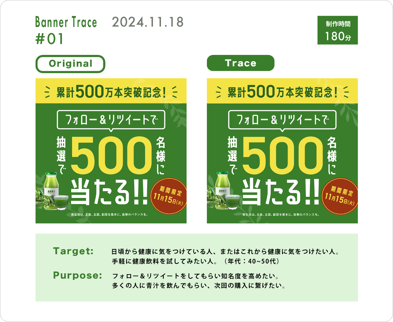 ① トレースしたバナー、ターゲットと目的