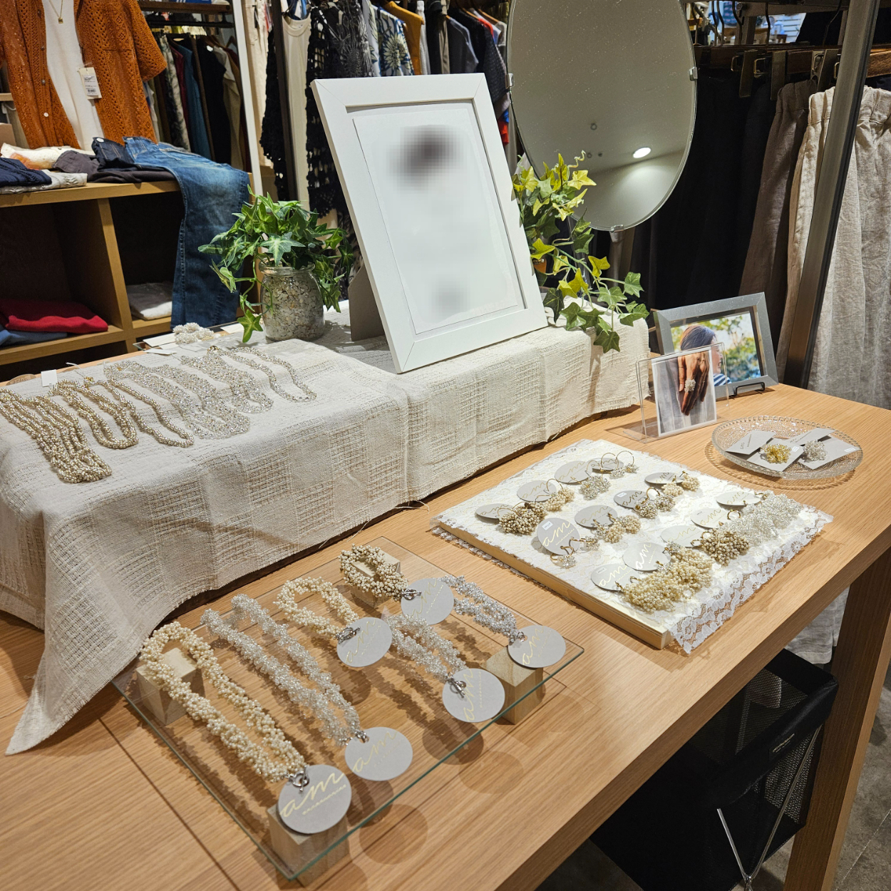 ネックレスは人気アイテムのため、どの角度からも手に取っていただけるよう、平置きで展開。