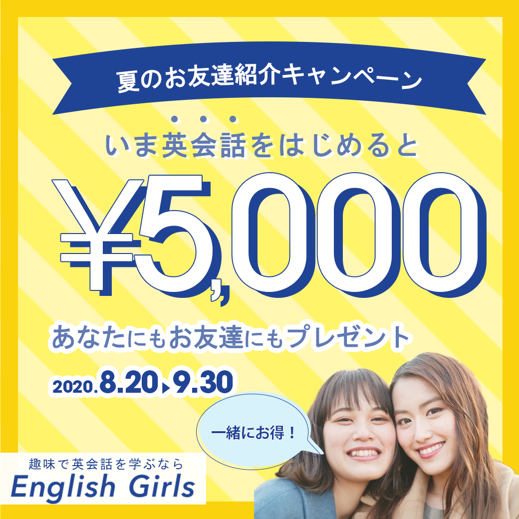 ③気になったので、期間を確認し「English Girls」のロゴと「趣味から始める」の文字で英会話スクールの広告で、紹介キャンペーンを行っていることを知った。