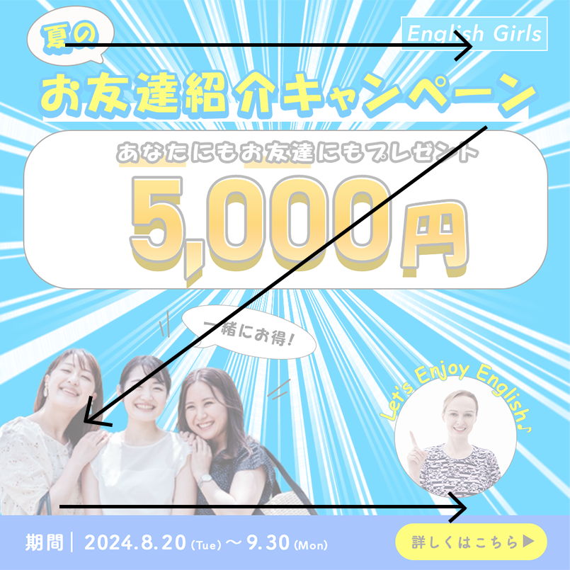 全体のバナーの色味と併せつつ、笑顔で楽しく英会話に通っているような写真を選定し、お友達キャンペーンだということが写真でも伝わるようにしました。