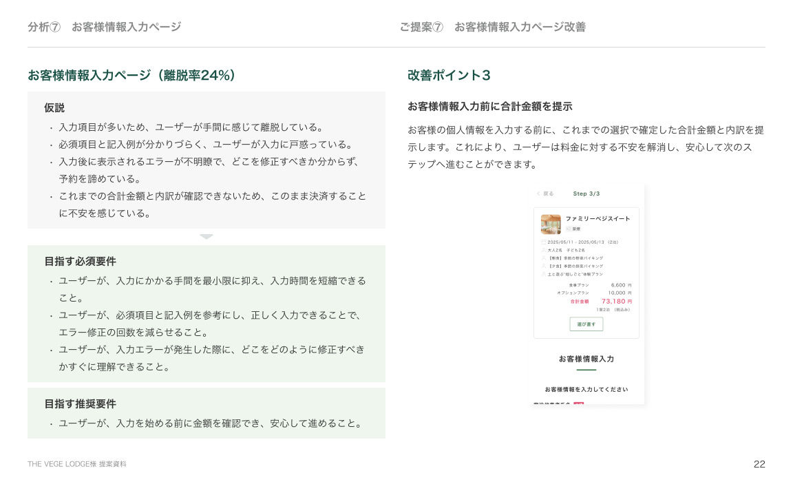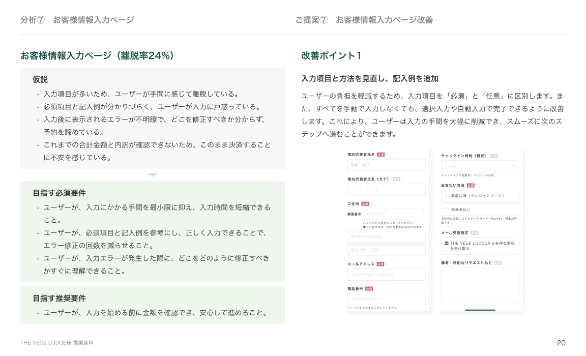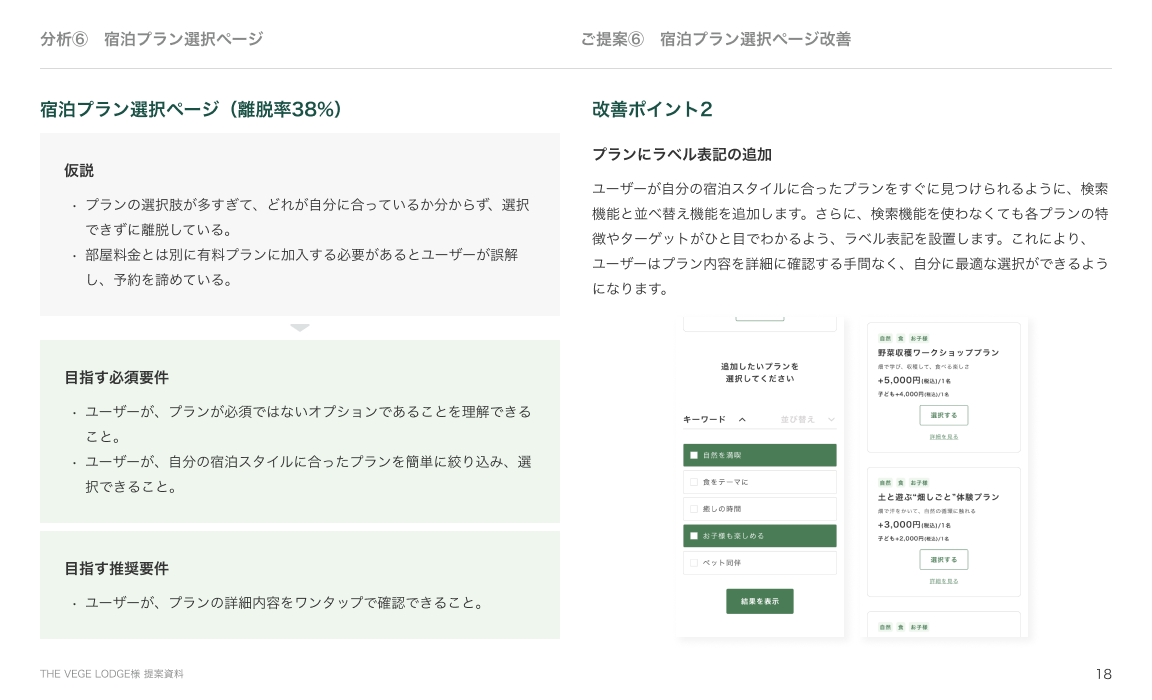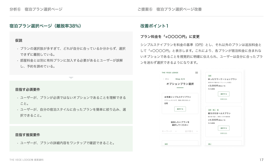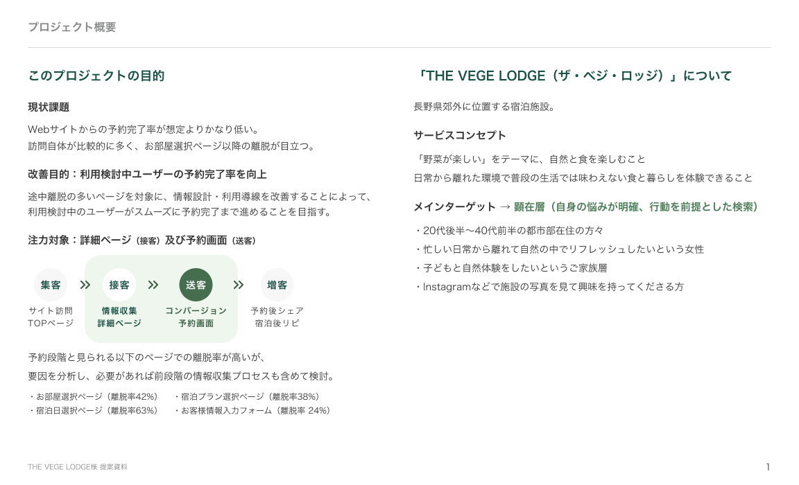 制作範囲:クライアントの課題分析、仮説構築、改善プロトタイプ制作、提案資料作成