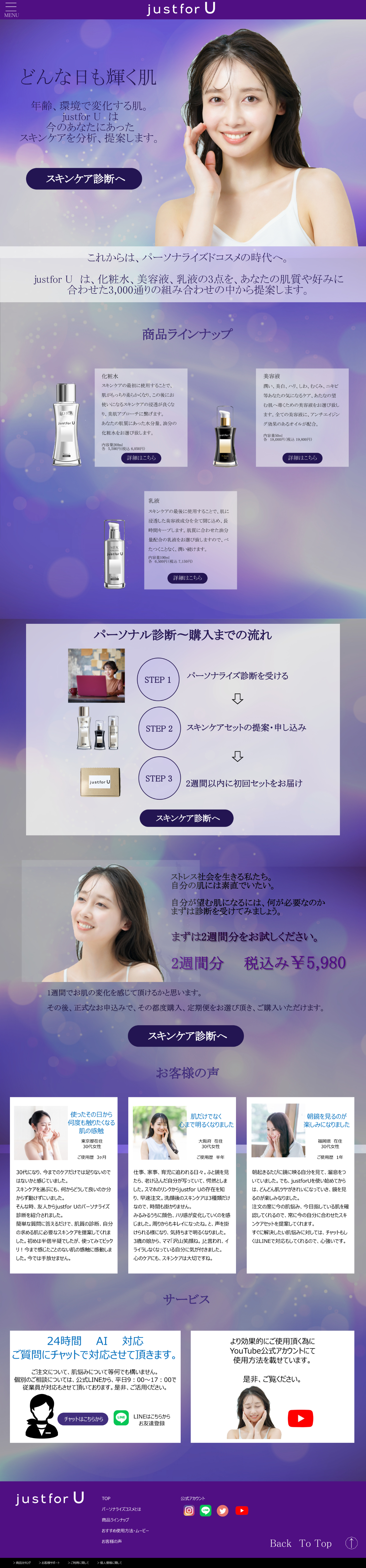 パーソナライズコスメのPC版LP