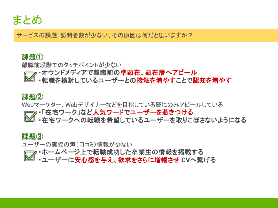 課題や改善案も一貫性があるものを作成する