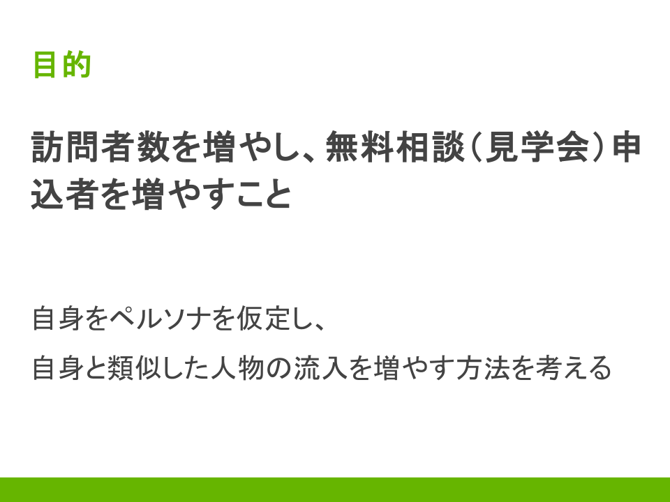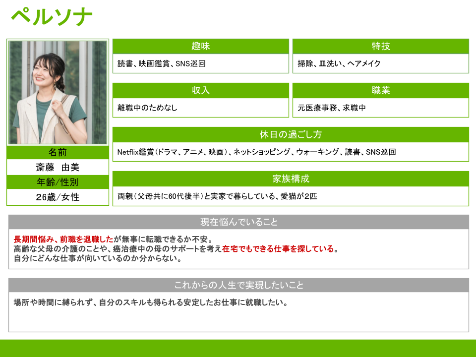①ペルソナの設定(今回は自分自身をペルソナとして設定)
