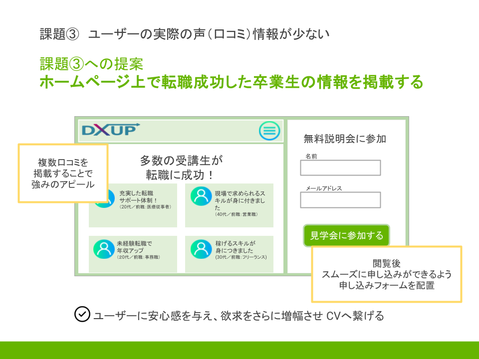 ⑤課題に対するサービスの改善案を提示