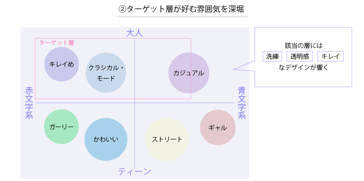 ペルソナの設定とペルソナとなるターゲット層が好む雰囲気を深堀し、デザインテーマを決定。