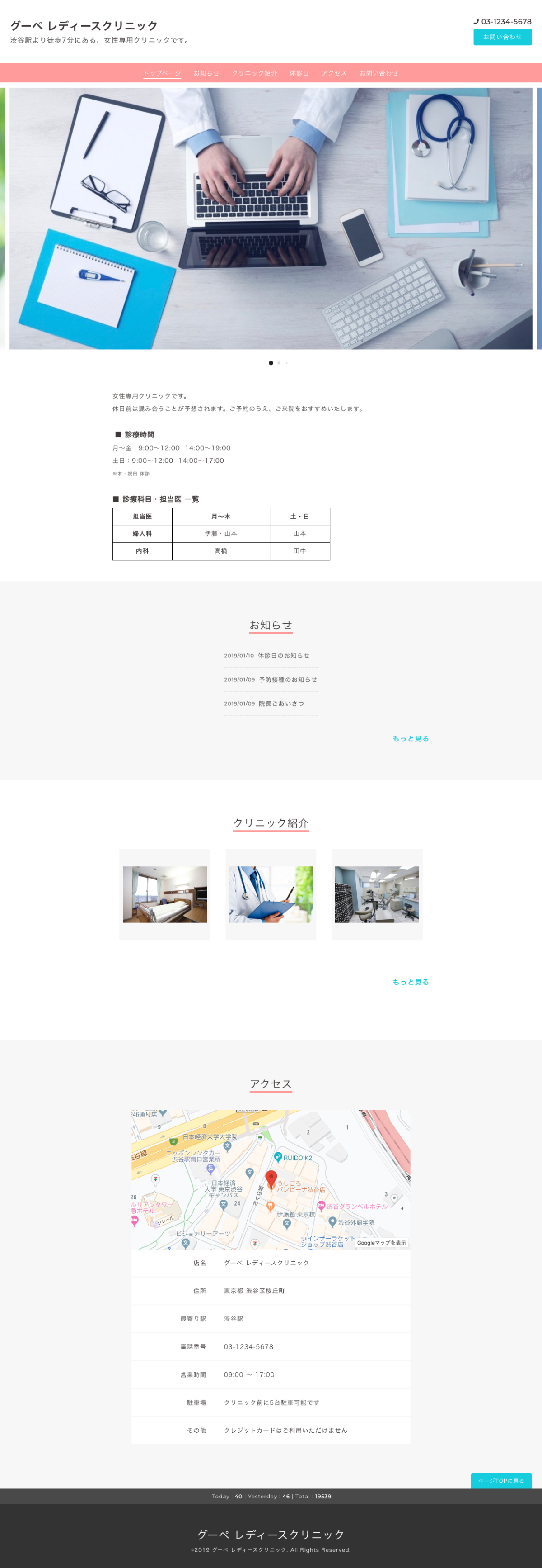 また、医療系だけでなく、会社や施設など様々な用途でHPを制作できるようにシンプルなデザインを心がけました。