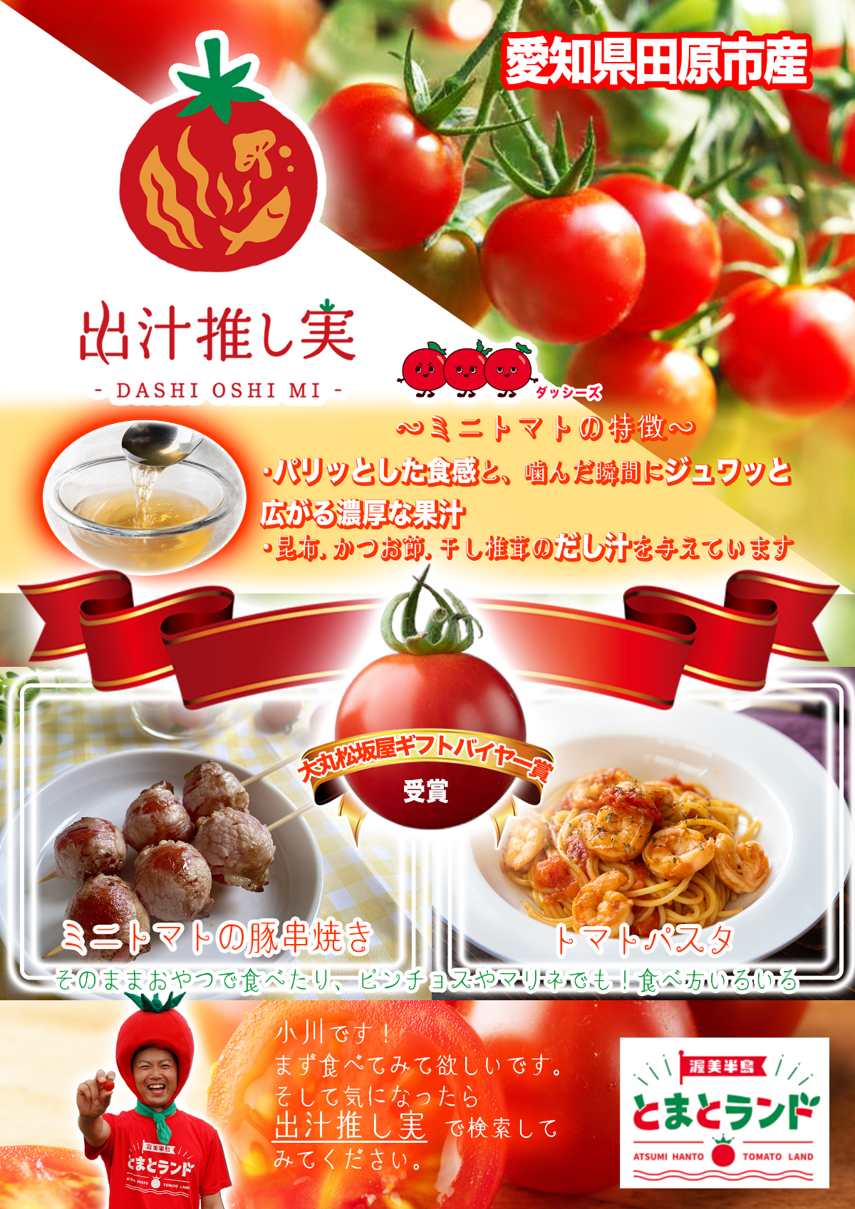 スーパーの店頭販売用POPデザイン ミツヤマ制作 webデザイン・印刷物/DTPデザイン OVERVIEW ブランドのミニトマト販促用ポスター YEAR 2024 コンペに応募したデザインです。ミニトマトの特徴やレシピが美味しそうに伝わるようにデザインしました。
