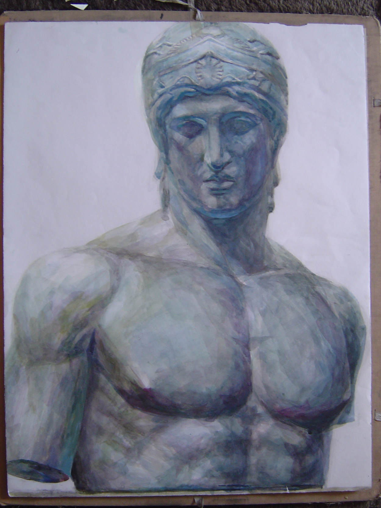 静物画 「石膏像 マルス」 画材:水彩絵具/時間:6時間