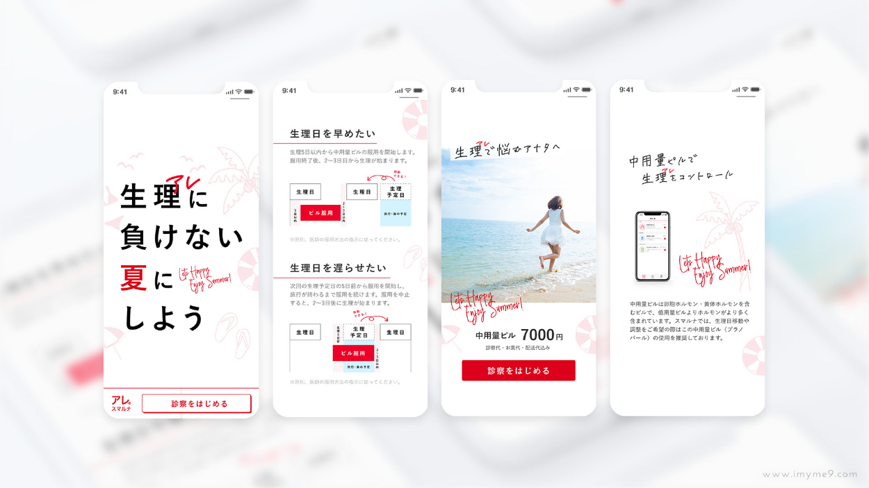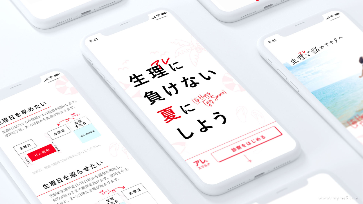 夏用イベントLPデザインを制作しました。 夏の旅行やイベント時に中用量ピルを使って生理をコントロールしようという企画です。