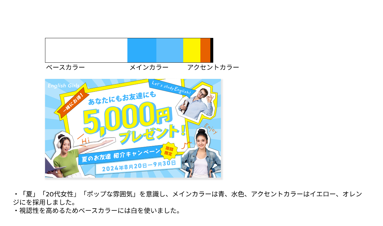 SHElikes MULTI CREATOR PROJECTの課題で、バナー制作に取組みました。20代女性をメイン顧客とする英会話教室のバナーです。