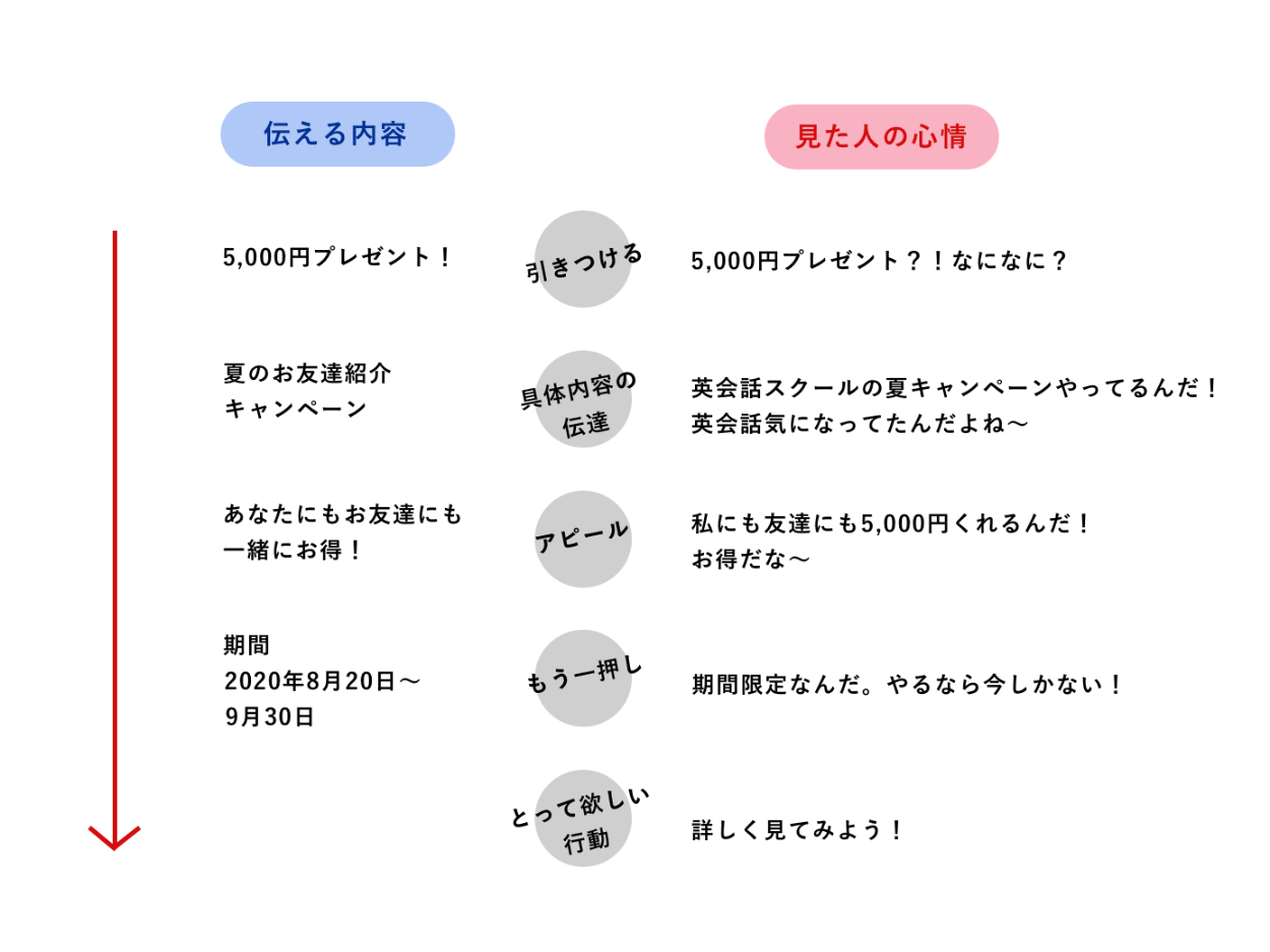 「¥5,000present」という文字に最初に目がいくよう大きく目立つように表示。