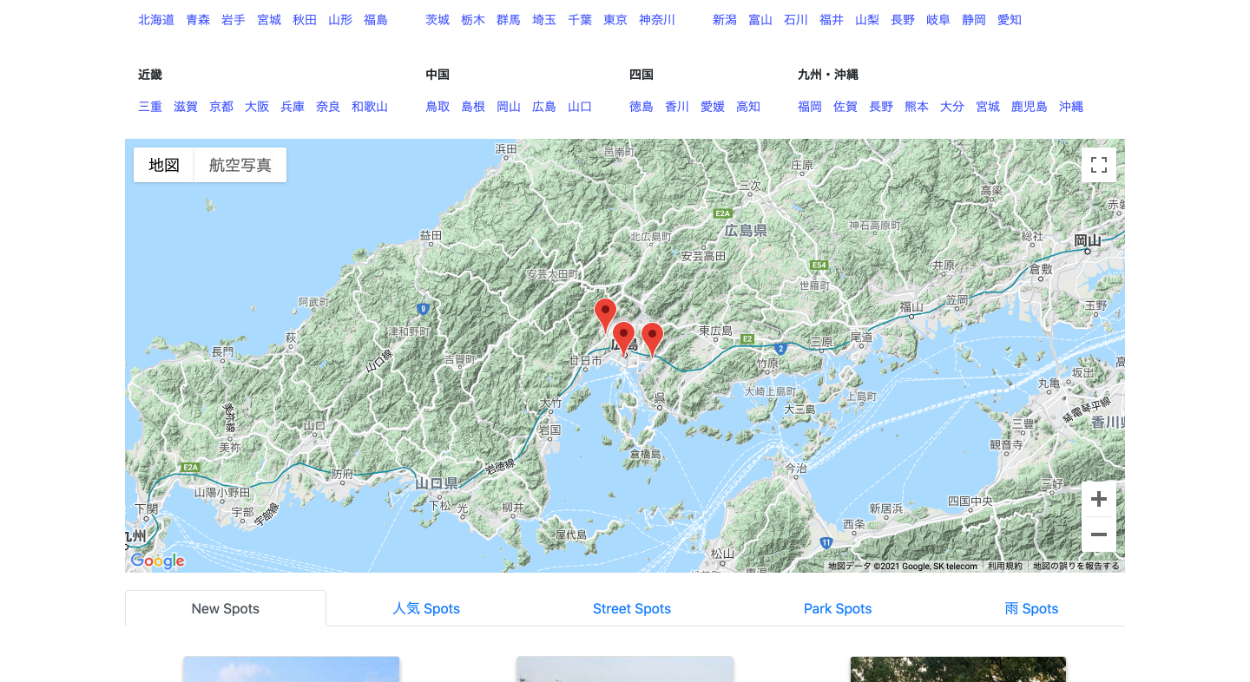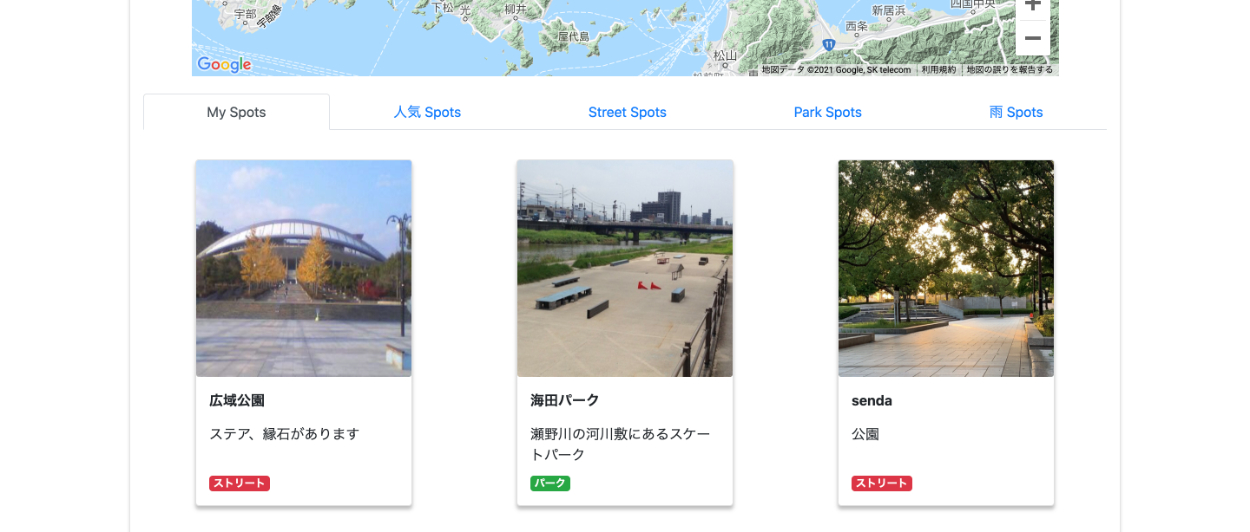 その下には、spotの情報が書いてあるカードが並んでいます。