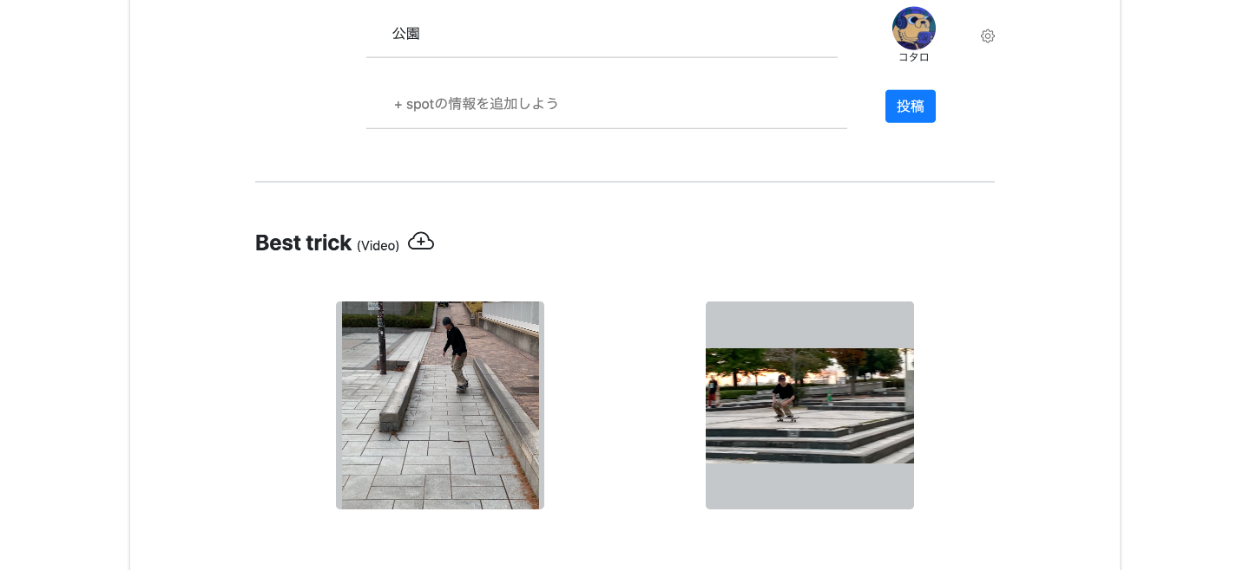 Best Trick機能は、ログインしていれば誰でもそのspotの動画を投稿できます。(mp4にしか対応してません)
